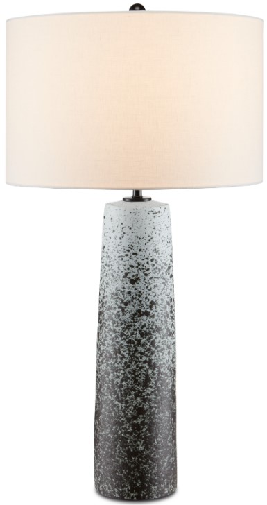 The Appaloosa Table Lamp is made of ceramic onto which flecks have been splashed in matte black and dark green hues. The white base onto which the color is stippled has a heavier coating at the bottom to ground the black table lamp.Read More