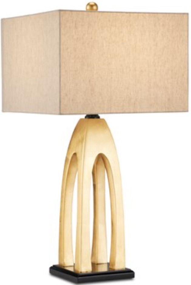 The Archway Table Lamp was designed by Clarence Mallari, the domed shape with its arcing lines inspired by a pagoda. The mix of finishes on the gold table lamp is an interplay of luminous and dark, the brilliant contemporary gold finish on the composite body contrasting the black base.Read More