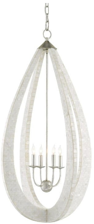 With thin arcing blades covered in hand-applied mother-of-pearl mosaics, our Arietta Teardrop Chandelier is an example of how talented our finish artisans are when it comes to handcrafted surfaces. The metal in a silver leaf finish enhances the glow of the fixture when the four lights of the silver chandelier illuminate.Read More