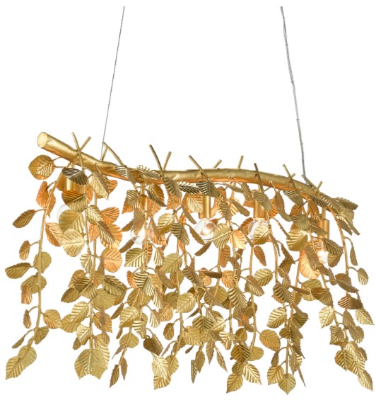 The Golden Eucalyptus Rectangular Chandelier in the Aviva Stanoff Collection is a nature-inspired gold chandelier made from metal in a contemporary gold leaf finish. We also offer the Golden Eucalyptus as a wall sconce.Read More