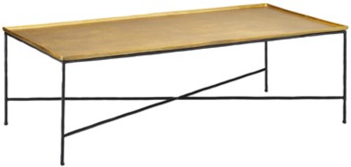 The Boyles Brass Cocktail Table has a simple forged iron base in a black iron finish holding an antique brass tray-like top. This gold coffee table is an expressive piece of furniture for any spot where a statement table is needed.Read More