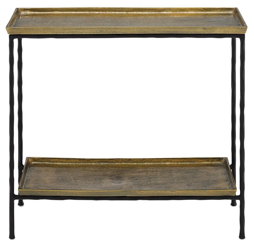 The Boyles Brass Side table has a simple forged iron base in a black iron finish holding an antique brass tray-like top. We have a number of Boyles products in silver and brass finishes.Read More