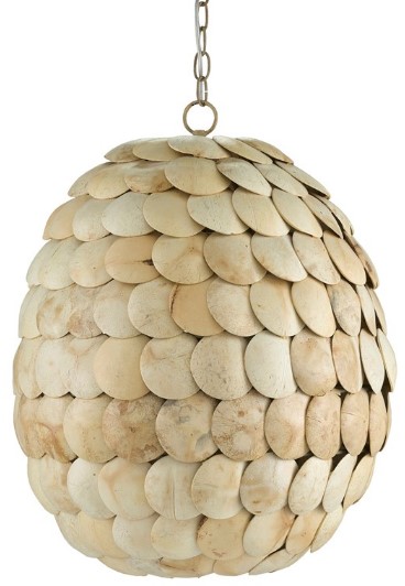 Exploring the shapes that could be achieved with coconut shells inspired the Buko Pendant. The bulbs on the interior give warm light against the cool tone of the bleached coconut shells. This beautiful natural material also highlights the slight texture and imperfections in each shell disc. The chain and hardware on the globe pendant are in a Coco Cream finish. We also offer Buko as a chandelier.Read More