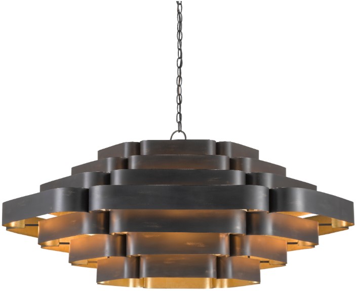 In the Bunny Williams collection, the Bailey Chandelier is a large chandelier with a two-tone finish: a contemporary gold leaf on the interior and French black on the exterior. Ambient light radiates between the ribbons of wrought iron in a warm glow due to the gold interior.Read More