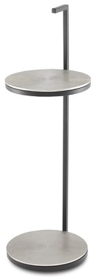 The multi-level Cane Drinks Table is made of a handsome mix of metals. The iron frame in a black finish is enlivened by a cast aluminum top and shelf in bright pewter. The striations in these bring this black drinks table extra sheen. We also offer the Cane as an accent table.Read More