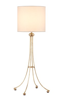 Tom Caldwell designed the Chesterton Large Table Lamp with its curving, four-legged base and cylindrical shade. It’s as if the gold lamp with its light-as-air profile is standing on its tiptoes. Made of wrought iron in a gold leaf finish this is the larger version of two lamps in this family, the Chesterton Small Table Lamp a much shorter version with a taller shade.Read More
