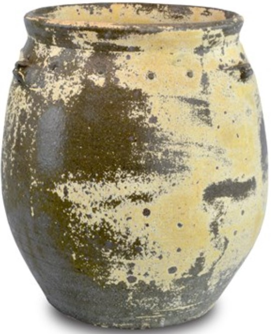 The antique white planter has pitting in its terracotta surface to create the ruse that it, too, has been tucked away in the landscape for ions.