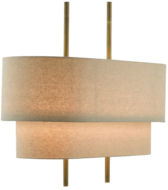 A study in simplicity, the Combermere Rectangular Chandelier has a pared-down profile that makes it one of our most versatile designs. Made of metal in an antique brass finish, the gold chandelier has stacked shades made of linen.Read More
