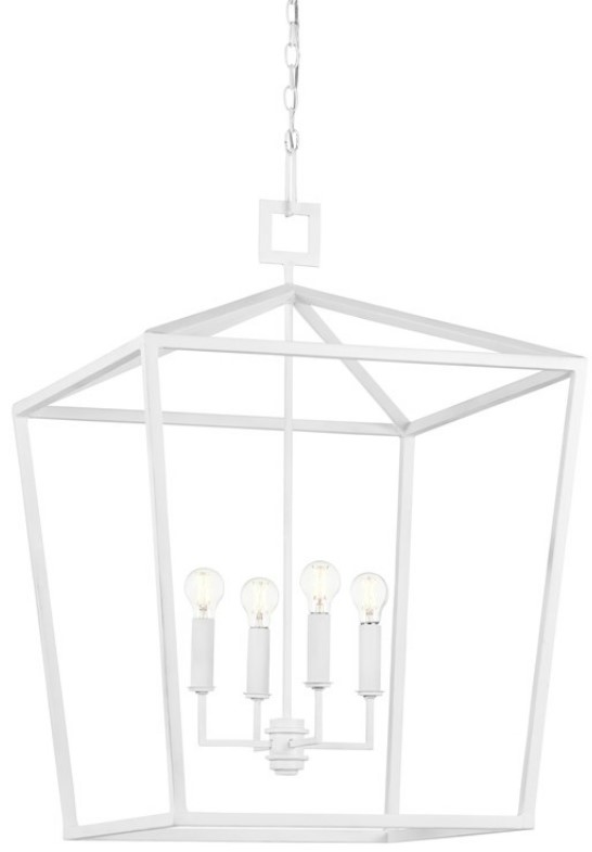 The Denison White Grande Chandelier is a hammered wrought-iron fixture in a gesso white finish. This classic lantern shape has stood the test of time to make it one of our most popular offerings. A refined aspect of the design is the square that fastens the lantern to the chain.Read More