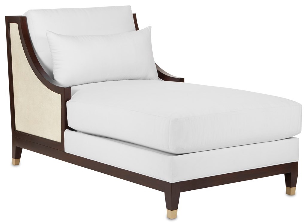 Elevate your living room with this Evie Muslin Chaise from Currey & Company. Shown in a white upholstered fabric, this chair features a soft cotton muslin fabric. Make a bold statement by incorporating this stunning furniture to your home.Read More