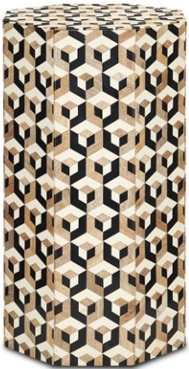 Made of mango wood, the Geo Accent Table is covered in pieces of natural mango wood, white bone, and black composite in an octagonal multi-colored pattern. Each piece of the complex puzzle is cut and applied by hand, making this a painstaking piece to realizeRead More
