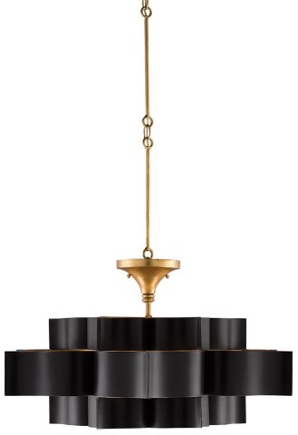 The Grand Lotus Black Large Chandelier receives its majestic good looks from a combination of stunning workmanship and a mix of satin black and contemporary gold leaf finishes. The black chandelier is skillfully fashioned from wrought iron. We also offer the fixture in a number of sizes and finishes.Read More