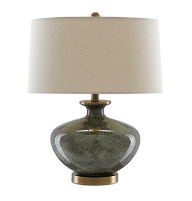 Our Greenlea Table Lamp is made of glass with an intermingling of dark gray and moss green swirling on its surface. The base, finial, and hardware in an antique brass finish complement the natural linen shade.Read More