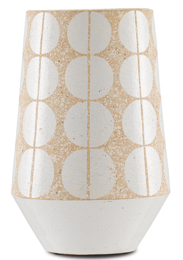 Fresh and on-trend, our collection of Happy Vases, which includes the Happy 60 Tapered Large Vase, is a reminder of the carefree times during the 1960s. The artistry employed to create these terracotta beige decorative vases is called a wax-resist technique. All of the surface areas that the artisan decides will be left unglazed are covered by wax so that the glazing material cannot give it the sheen that comes with it. Though the beige and white pattern is our nod to the ultra-60s, the shapes of the decorative accents have been modernized with cleaner lines.Read More