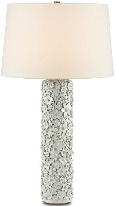 The Jessamine Table Lamp is truly an artisanal piece with a surface that is studded with beautifully fashioned white flowers. Rather than apply one type of bloom, a number of floral shapes are intermingled to give the white lamp a charm that is heightened by the top edge that is slightly rounded as it disappears beneath the shade.Read More