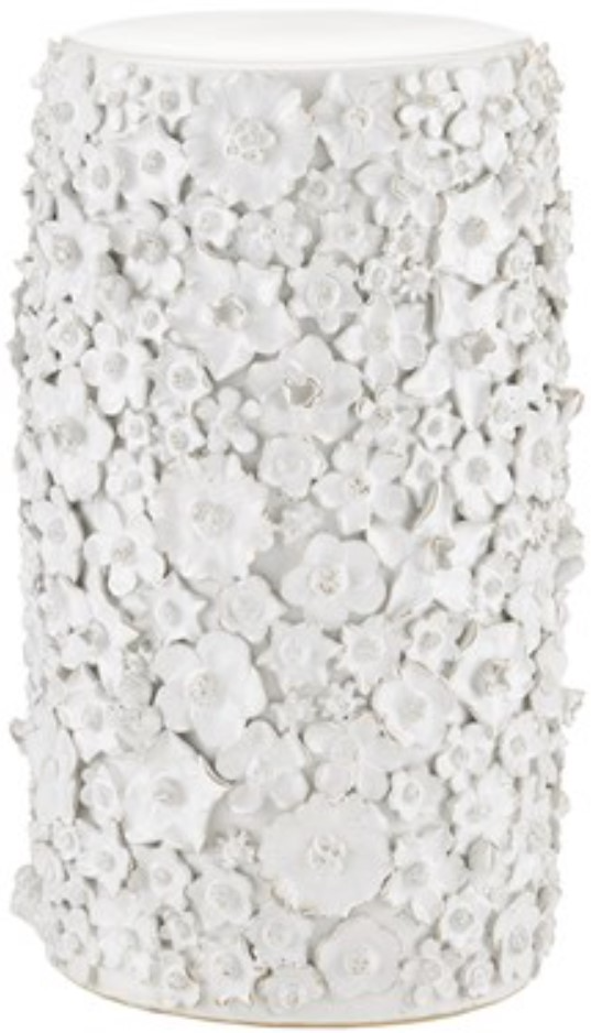 With a surface that is studded with beautifully fashioned white flowers, the Jessamine White Side Table is truly an artisanal piece. Rather than apply one type of bloom, a number of floral shapes are intermingled to give the white decorative table charm.Read More
