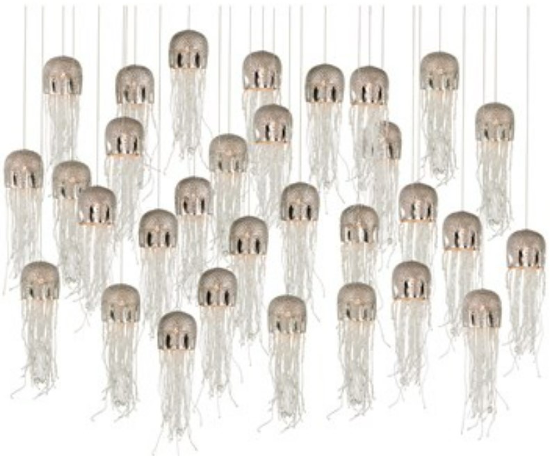 The Medusa 30-Light Multi-Drop Pendant effervesces with echoes of the deep sea. Beads cascading from its dimpled shades in a nickel finish mimic the profile of a jellyfish, one of nature’s most mysterious creatures.Read More