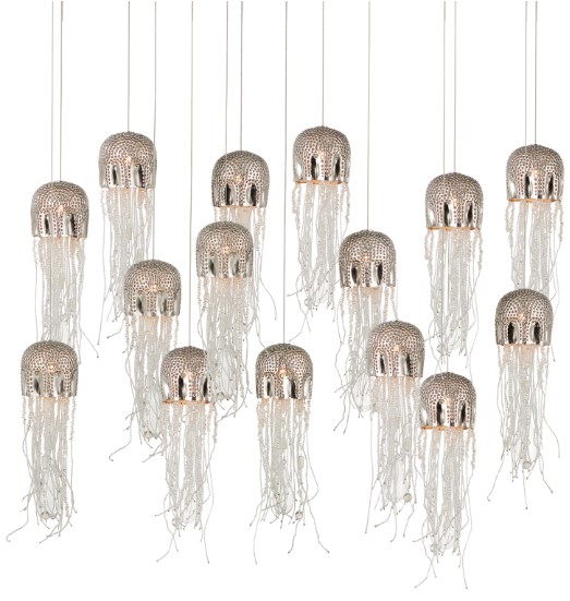 The Medusa Rectangular 15-Light Multi-Drop Pendant effervesces with echoes of the deep sea. Beads cascading from its dimpled shades in a nickel finish mimic the profile of a jellyfish, one of nature’s most mysterious creatures.Read More