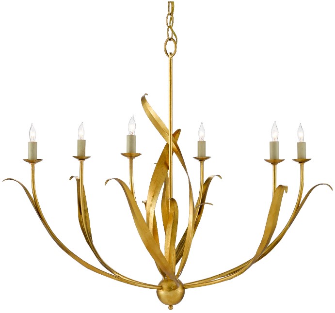 The Menefee Chandelier has swirls of long, slender leaves made of wrought iron in an antique gold leaf finish, which makes the metal gleam. This graceful gold chandelier is one of our offerings that illustrates the dexterity of our artisans, who make this resolute material feel so fluid.Read More