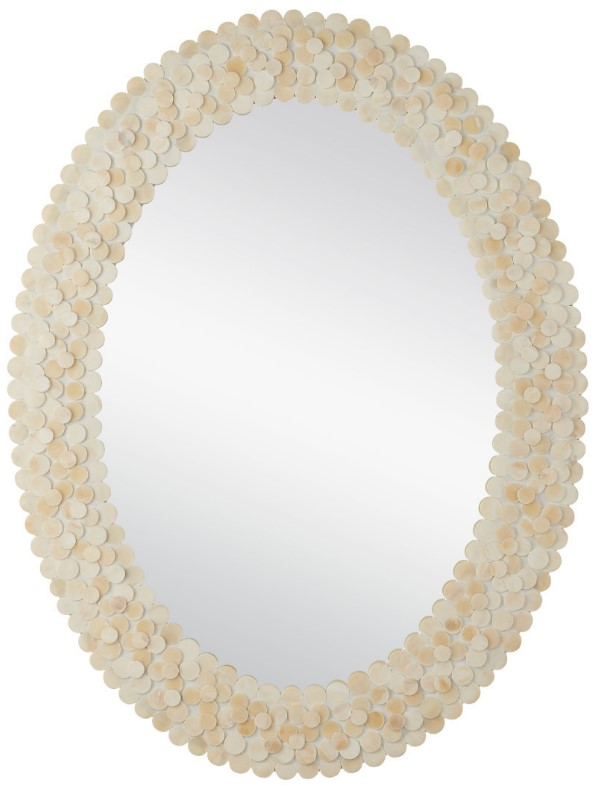The Merriam Oval Mirror has an lovely frame fitted with over 200 hand-ground buffalo-bone discs. The color variations in the delicate bone bring this ivory decorative mirror a textural interest, while the painstaking placement of the circlets brings it a sophisticated feel. There is no bevel on the mirror.Read More