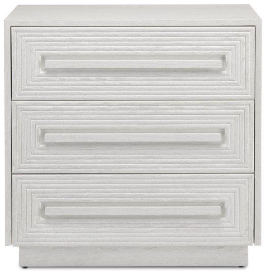 The cerused white finish on the Morombe white chest, made out of white oak, highlights the patterns of natural wood that form embedded squares in a geometric illusion of depth.Read More