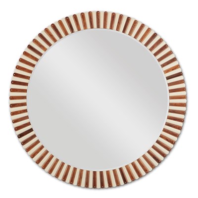 The Muse Large Mirror is a contrast in materials and tones. Pieces of Sheesham wood and composite are fastened onto its frame, the warmth of the woodgrain contrasting the pale smooth pieces of composite. Both materials are rounded on the edge to give the mirror a fluted profile. The brass pins at the culmination of each piece of wood add a sophisticated design detail on this wood decorative mirror. The Muse also comes in a smaller size.Read More