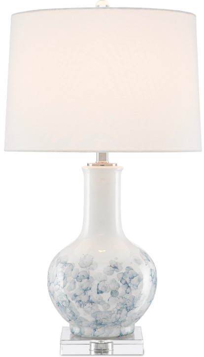 Asian in its design notes, the Sylph Table Lamp is made of porcelain onto which a pastel blue glaze has been applied. The surface of the blue lamp was then ornamented with white winged creatures. The Sylph is topped with an off-white linen shade.Read More
