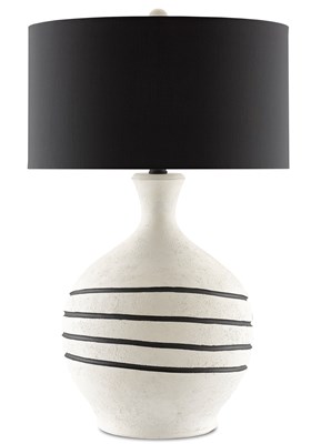 With circular lines scored into its terracotta body, the Nabdean Table Lamp is artful. These black indentions and the irregular surface bring the white lamp the feeling it has been created by a master potter. We've topped the Nabdean with a black shantung shade.Read More