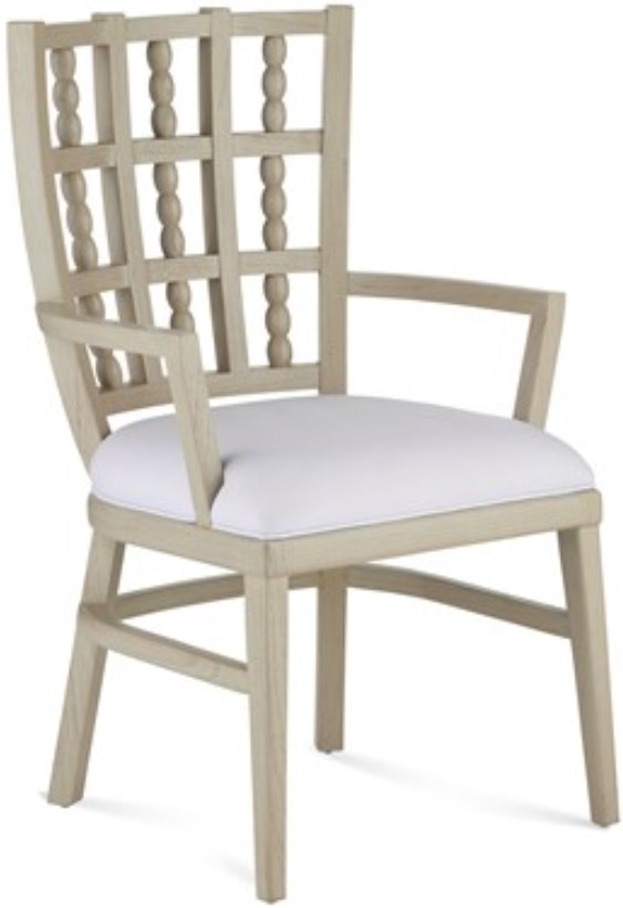 The Norene Gray Armchair is made of fog gray-finished Mindi wood. The wood grain shows through the finish to lighten the material and bring a textural feel to the piece. Special attributes about the design of this gray dining chair are the bobbin, or spool, ornamentations that are intermittently placed along its back.Read More