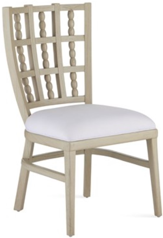 The Norene Gray Chair is made of fog gray-finished Mindi wood. The wood grain shows through the finish to lighten the material and bring a textural feel to the piece. Special attributes about the design of this gray dining chair are the bobbin, or spool, ornamentations that are intermittently placed along its back.Read More