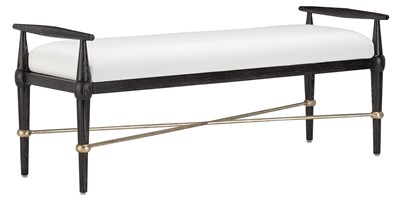 The Perrin Muslin Bench is our director of furniture Aimee Kurzner’s take on mid-century modern but with a slight transitional twist. Made of oak in an ebonized taupe finish, the dark brown bench is ornamented with iron stretchers in a silver Granello finish. Upholstered in a Muslin fabric.Read More