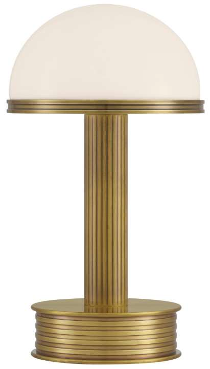 The Promenade Brass Cordless Table Lamp will wander with you wherever you need an ambient light source. At just 10 inches high, the gold lamp glows in a polished brass finish with a glossy white glass cap.Read More