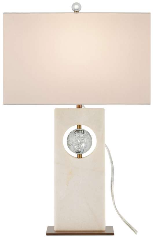 The Radiant Table Lamp has a sophisticated profile made of a glamorous mix of materials. The tall rectangular body, which is made of white marble, has a circular cut-out into which a bubbled optic-crystal orb is fastened.Read More
