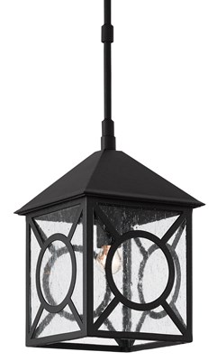 The Ripley Small Outdoor Lantern in our Twelfth Street collection of outdoor lighting features a high-performance, weather-resistant Trilux finish that is fade resistant, crack resistant and rust resistant. We guarantee the finishes applied to our Twelfth Street pieces for five years. The metal on this black sconce in a midnight finish surrounds seeded-glass panes. We also offer the Ripley in a large hanging lantern, and as wall sconces and post lights.Read More