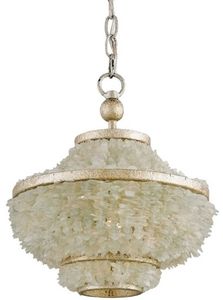 The Shoreline Pendant is fitted with a thick layering of tumbled sea-glass that exudes hints of the ocean in subtle aquamarine and seafoam tones. The bands that encircle this three-tiered pendant in a silver leaf finish bring the frosted glass pendant a luxurious vibe, as does the density of the glass pieces fastened to them.Read More