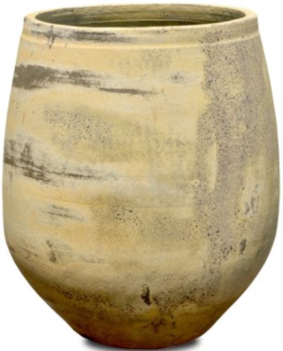 The antique white planter has pitting in its terracotta surface to create the feel that it, too, has been tucked away in the landscape for ions.
