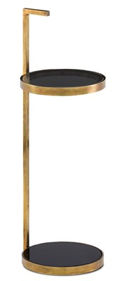 Our Silas Drinks Table is made of steel in a brass antique finish with circular panes of smoke glass. The black and gold drinks table is easy to move from place to place. We also offer the Silas as an accent table.Read More