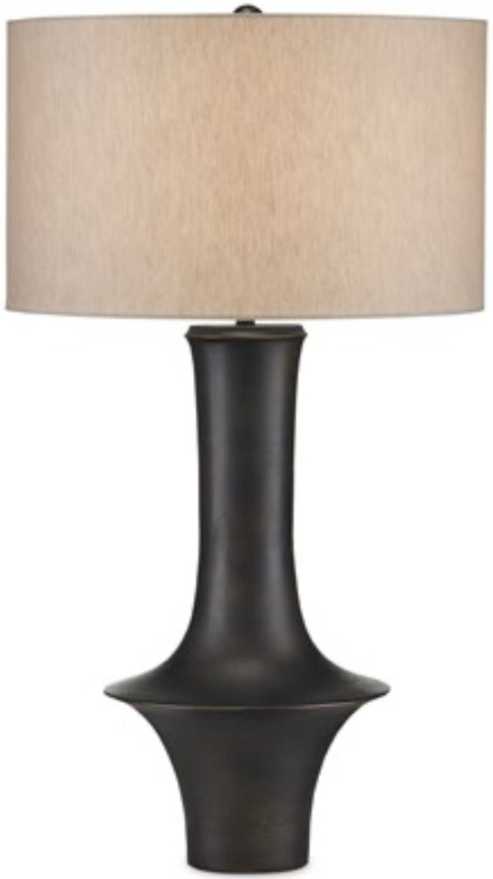 The natural linen shade brings the black table lamp even more texture and heightens the warmth of the overall composition.