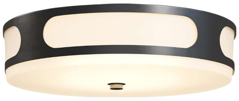 The Swale Outdoor Flush Mount has a graphic silhouette with cut outs where illumination can escape. The sides of the black flush mount are covered with milky white glass that illuminates uniformly when the integrated LEDs shine through it. The metal is powdercoated to make this outdoor flush mount weather-worthy.Read More