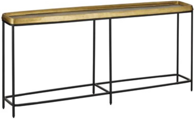 The Tanay Brass Console Table is not shy when it comes to infusing a space with an incredible mix of textures. Not only does the cast aluminum top have tell-tale pitting on the surfaces of its gleaming gold interior and exterior edge.Read More