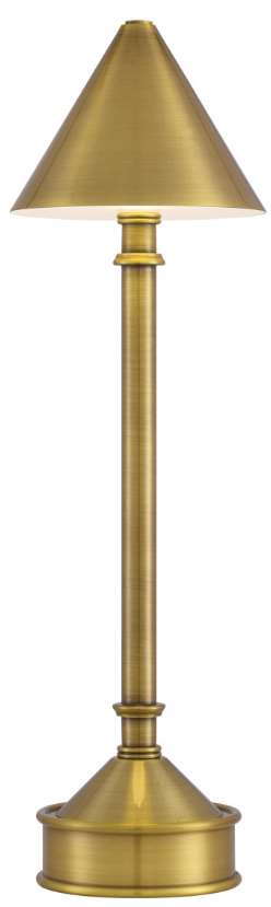 The Traipse Brass Cordless Table Lamp is a gold lamp that has a way of getting around. The metal lamp in a polished brass finish is petite in size, and its base holds the on/off switch. The matching metal shade has a diffuser on the bottom.Read More