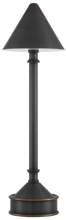 The Traipse Bronze Cordless Table Lamp is a black lamp that has a way of getting around. The metal lamp in an oil-rubbed bronze finish is petite in size, and its base holds the on/off switch.Read More