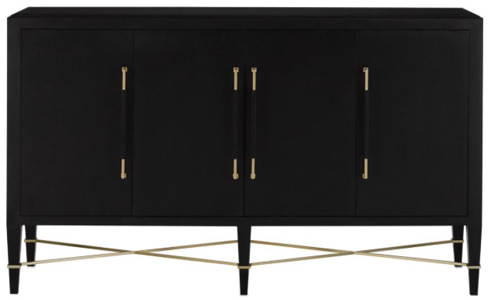 The Verona Black Sideboard is darkly handsome covered in black lacquered with metal detailing in a champagne finish. The stretchers on this minimalist sideboard bring it its flair. There are a number of pieces in the Verona family of furnishings in both black and brown finishes.Read More