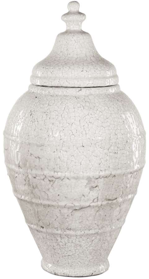 Mimicking the shapes of the terracotta jars that have historically been used for preserving olives in oil, the Virginal Large Jar is made of terracotta with an antique-white, hand-applied glazing that is so thick and rich it has a crackle surface.Read More