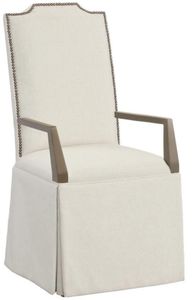 The Fairfield® customizable dining entree empire tall back skirted arm chair offers timeless elegance with its high back design and tailored skirt. Expertly crafted for comfort and durability, it features customizable upholstery, making it a sophisticated addition to any dining setting.Read More