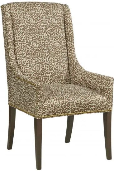 Elevate your dining room setup with this elegant armchair from Fairfield. Made from maple solids. Shown in animal print upholstery and a dark brown finish on the legs, this beautifully crafted chair will elevate the look of your space.Read More