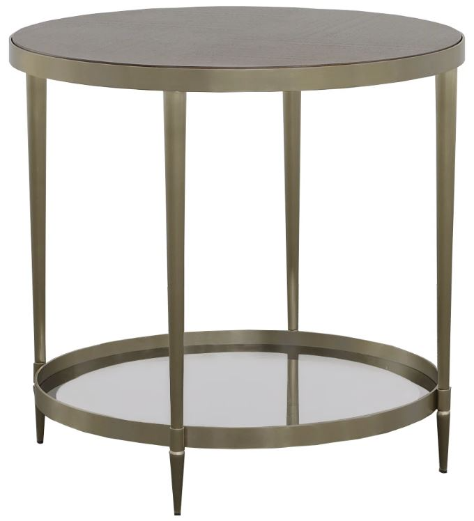 The walnut wood stained in the smoked stone finish paired with the champagne brass frame offers great contrast and the lower shelf in black mirror material is reflective and unexpected. The Marlowe End Table is a dynamic design that can be a true statement piece in any room.