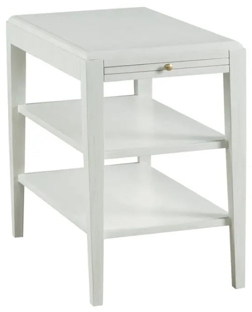 Finished in Pearl with one pull-out shelf and two fixed shelves.