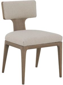 This Everett Side chair features a light-toned wooden frame with clean lines and a minimalist design. The seat and backrest are upholstered in a textured, light-colored fabric. It's a modern, comfortable chair that balances a warm, natural feel with a sophisticated aesthetic.Read More