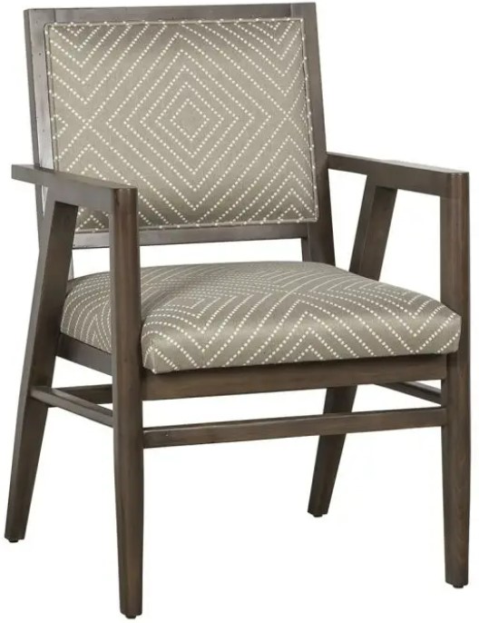 Complete your dining room setup with this elegant armchair from Fairfield. Made from beech solids. Shown in gray upholstery and a brown finish on the legs, this beautifully crafted chair will elevate the look of your space.Read More